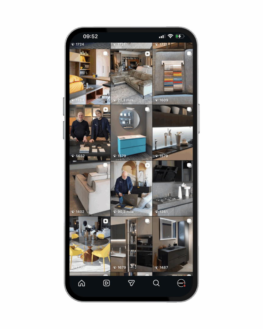 L’esigenza di Casa+ era quella di presidiare i social con un’attività mirata sulla presentazione dei prodotti in showroom e della progettazione su misura.